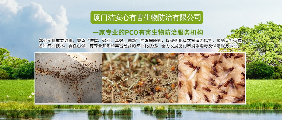 廈門潔安心有害生物防治有限公司成立于2020年是一家專業(yè)的PCO有害生物防治服務(wù)機構(gòu),是經(jīng)廈門市工商局注冊登記、廈門市白蟻防治管理所、PCO協(xié)會批準(zhǔn)的城市害蟲綜合治理公司,專業(yè)殺臭蟲、殺白蟻、殺蟲、滅老鼠的公司,是集廈門白蟻防治、廈門殺蟲、滅鼠滅四害、廈門殺臭蟲、廈門殺白蟻、廈門滅蟑螂治理銷售于一體的大型專業(yè)廈門有害生物環(huán)保服務(wù)公司。主要從事新建、擴建、改建、裝飾裝修單位建筑物的白蟻防治和白蟻預(yù)防工程,同時從事工廠、酒店、企事業(yè)單位、住宅小區(qū)和家庭的”四害”滅治和白蟻防治服務(wù),長期向各類型客戶提供廈門白蟻防治、廈門殺蟲、滅四害,廈門殺臭蟲、廈門殺白蟻、廈門滅鼠等優(yōu)質(zhì)服務(wù)。